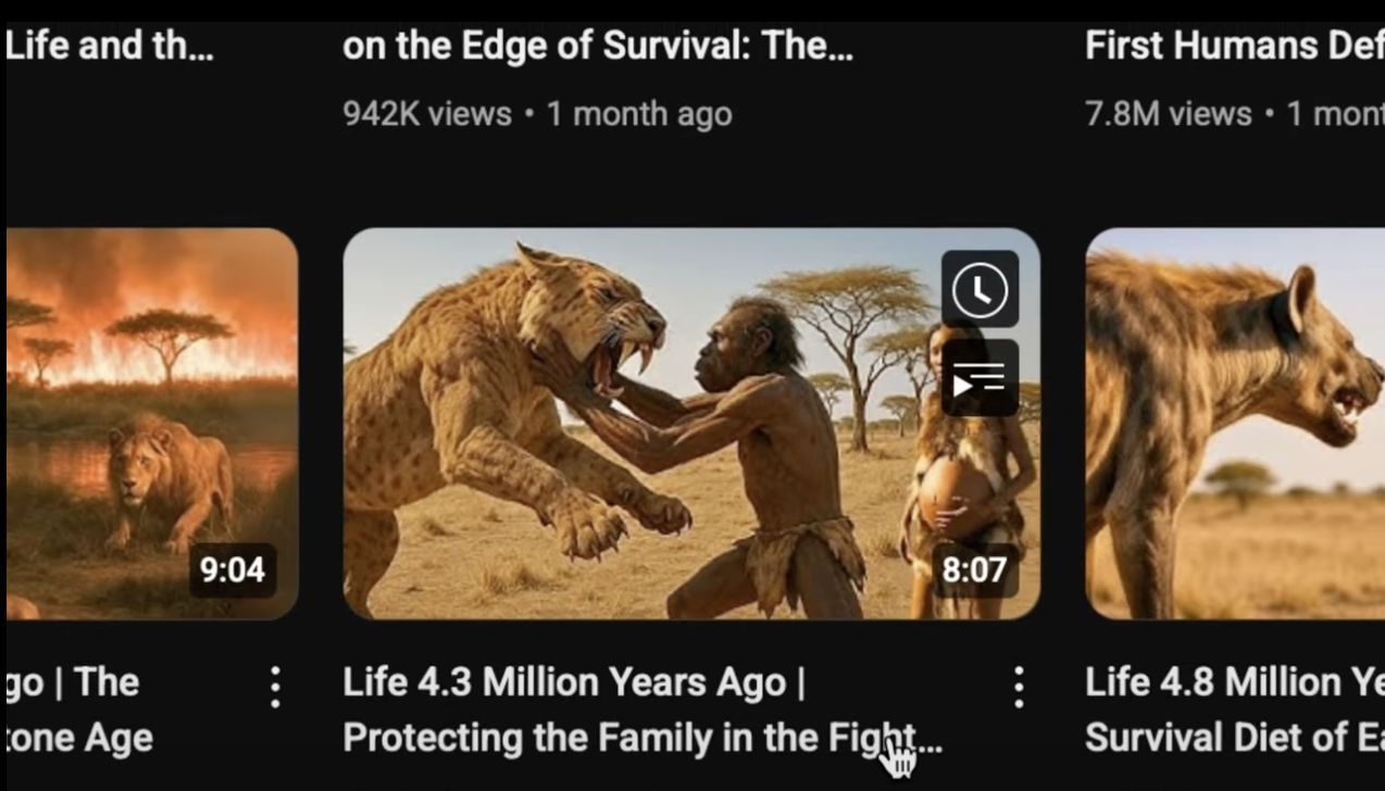 Video của bạn cũng phải gây sự tò mò và thu hút ngay từ những giây đầu tiên. Hãy tạo những video với hình ảnh sống động, ví dụ như cảnh con người tiền sử chiến đấu với hổ hoặc những cuộc gặp gỡ ly kỳ với các loài động vật.