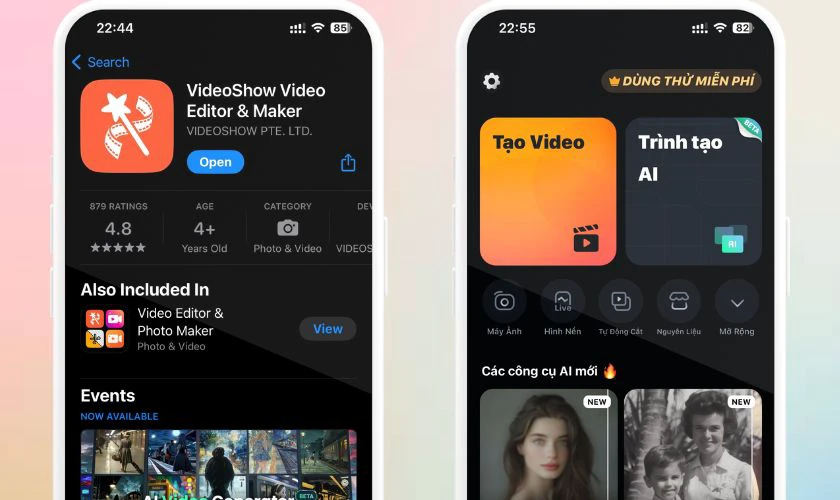 Bạn có thể tìm kiếm và tải xuống các ứng dụng như iMovie hoặc InShot từ App Store trên iPhone của mình.