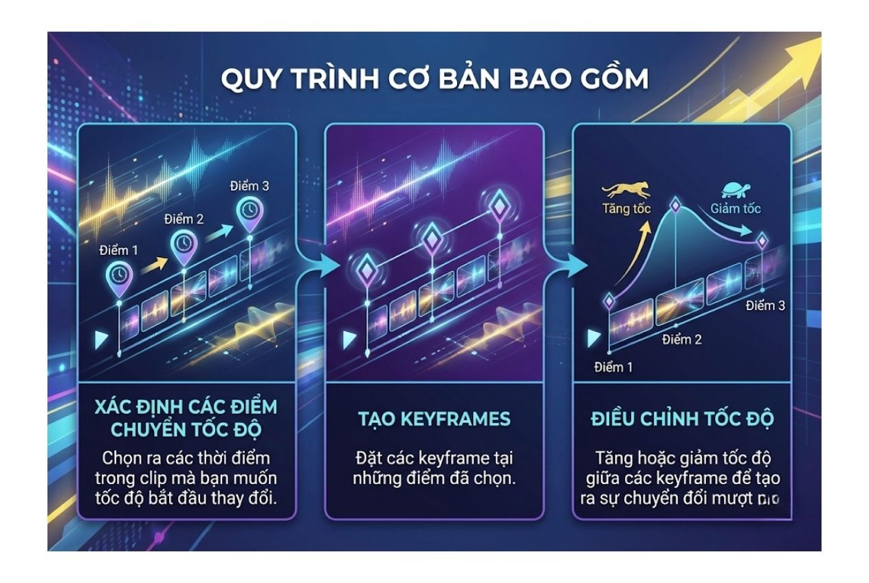 Để thực hiện speed ramping, bạn cần sử dụng các công cụ chỉnh sửa có hỗ trợ keyframe hoặc speed curve đã đề cập ở trên. Quy trình cơ bản bao gồm: