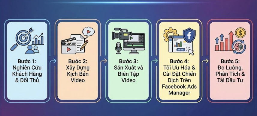 Để tạo ra những quảng cáo video trên facebook hiệu quả, bạn cần một quy trình hệ thống, không phải sự sáng tạo ngẫu hứng. Dưới đây là quy trình 5 bước mà chúng tôi đã áp dụng thành công cho hàng trăm chiến dịch.
