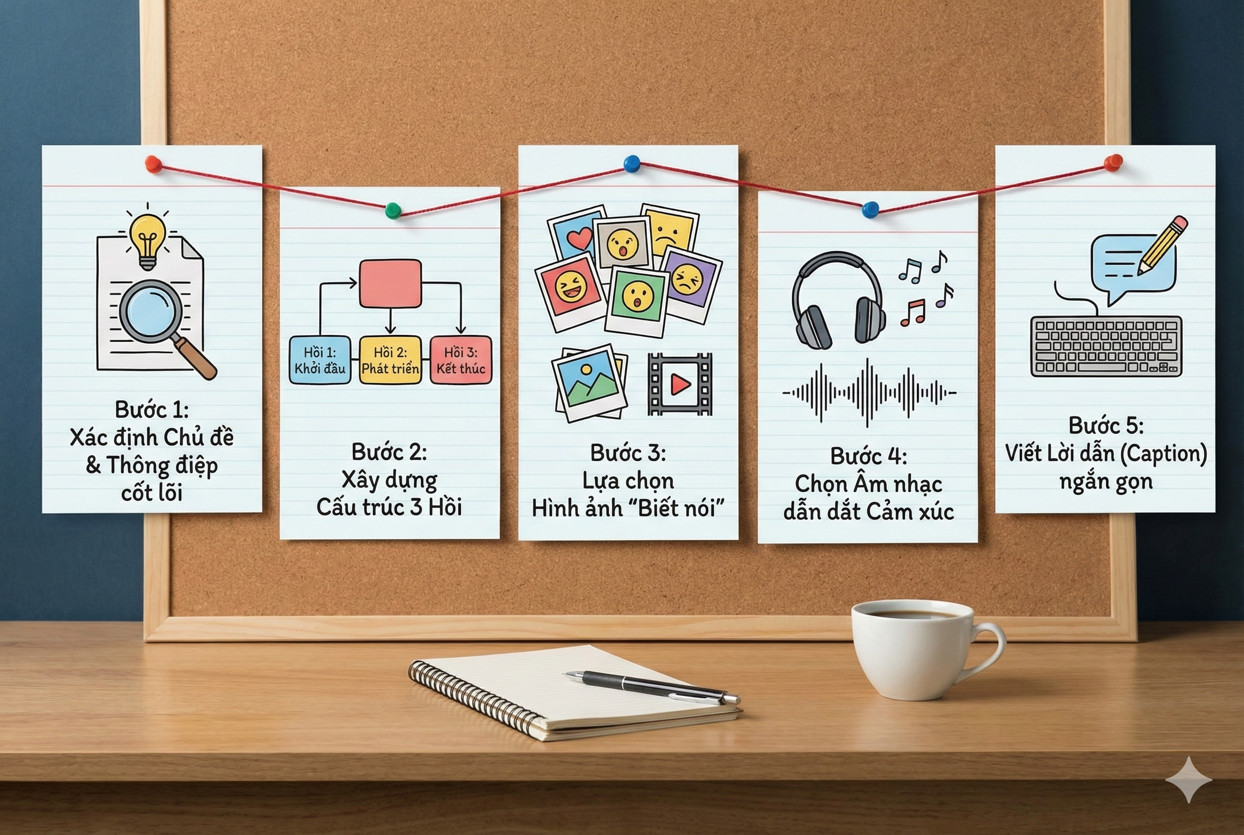 - Bước 3: Lựa chọn Hình ảnh “Biết nói”. Không phải mọi bức ảnh đẹp đều phù hợp. Hãy chọn những bức ảnh có cảm xúc, kể được một câu chuyện mà không cần lời. Ưu tiên ảnh chụp khoảnh khắc tự nhiên thay vì ảnh sắp đặt.