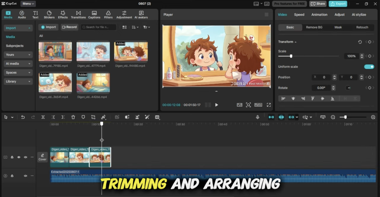 Chỉnh sửa và điều chỉnh các clip để video hoàn thiện.