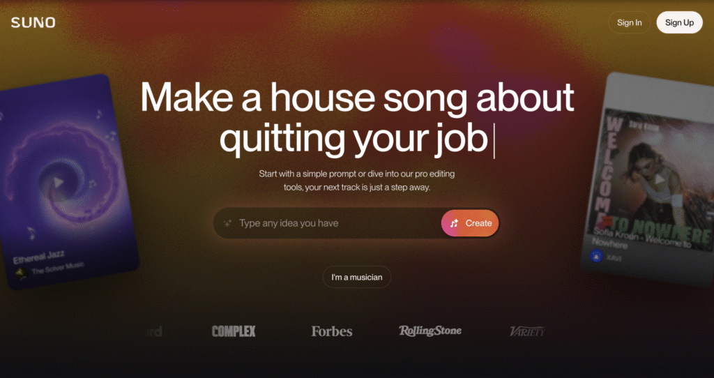 Nhấn nút “Create” và chờ AI tạo ra bài hát cho bạn.